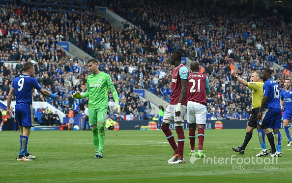 레스터는 지난 17일 (한국시간) 킹파워 스타디움에서 펼쳐진 2015-16 잉글리시 프리미어리그(EPL) 34라운드에서 웨스트햄 유나이티드와 2-2 무승부를 기록했다. 이 경기에서 레스터는 극적인 승점 1점을 회득했지만 바디가 퇴장을 당했다.