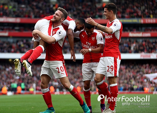 아스널 (3): 월콧(전반 26분, 전반 32분), 외질(후반 11분)