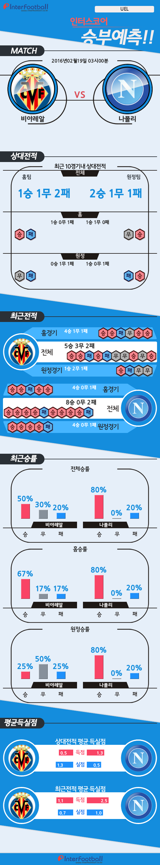 비야레알은 14승6무4패를 기록하며 스페인 프리메라리가 4위에 랭크 되어 있고 나폴리는 17승5무3패를 하며 이탈리아 세리에A 2위에 있다.
