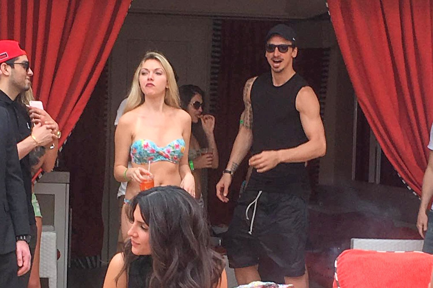 즐라탄은 호텔 수영장에서 파티를 즐기는 모습이 포착되며 많은 팬들에게 주목을 받았다. 특별한 사람만 입장할 수 있는 곳에서 즐라탄은 특별한 시간을 가졌다.
