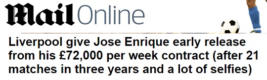 리버풀과 이별하게 된 시점에서 영국의 ‘데일리 메일’이 그를 조롱했다. ‘데일리 메일’은 “주급으로 7만 2천 파운드(약 1억 2천)을 받아온 엔리케는 3년간 고작 21경기에 뛰었고 많은 셀피를 남겼다”며 비아냥 거렸다.