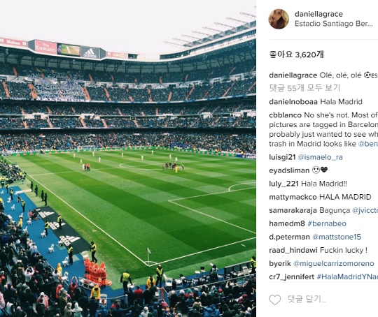 한편, 그녀는 호날두가 뛰고 있는 레알의 홈구장, 산티아고 베르나베우에 자주 경기를 보러가는 것으로 보인다. 그레이스는 자신의 SNS를 통해 산티아고 베르나베우에 레알을 응원하는 모습을 자주 게재하는 등의 모습을 보였다.