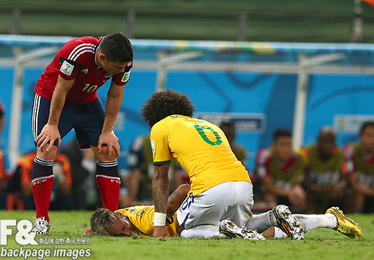 브라질을 대표하는 스타이자 세계 축구계의 신성으로 떠오른 네이마르(22, 바르셀로나)를 남은 기간 동안 볼 수 없게 됐다. 네이마르는 콜롬비아와의 8강전에서 상대 수비수 후안 카밀로 수니가의 킥으로 인해 척추골절상을 입었다.