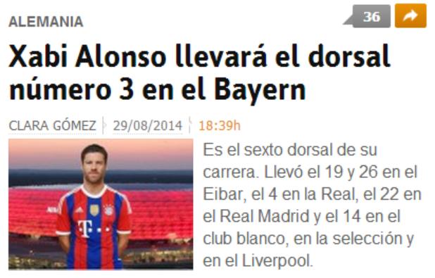 알론소는 스페인 대표팀, 리버풀, 레알 마드리드에서 14번을 줄곧 달았다. 그런데 바이에른에는 이미 피사로가 그 번호의 주인이었다. 결국 다른 번호를 선택할 수밖에 없었던 것.