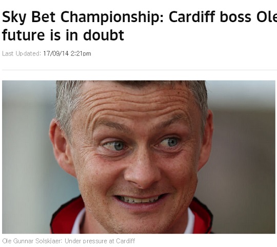 [인터풋볼] 왕찬욱 기자= 카디프 시티의 지휘봉을 잡고 있는 올레 군나르 솔샤르(41) 감독의 자리가 위태로운 것으로 알려졌다.