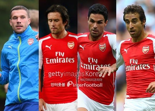 이들이 꼽은 '주급도둑' 4인은 루카스 포돌스키(29), 토마시 로시츠키(34), 미켈 아르테타(32)와 마티유 플라미니(30)다.