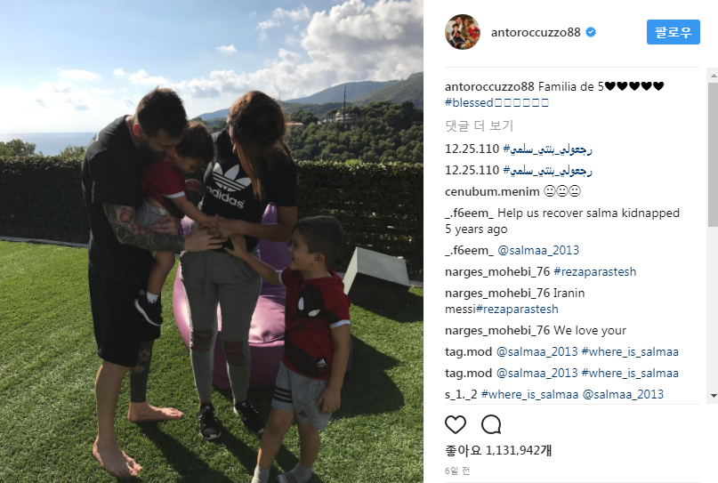 메시 부부가 셋째를 기다리고 있다고 공식 확인했다. 인스타그램에 올린 1장의 사진을 통해서다. 메시의 부인 안토넬라 로쿠소는 15일(현지시간) 인스타그램에 가족사진을 올렸다.