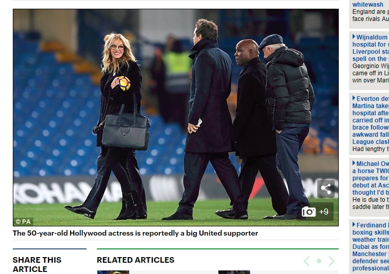 안타까운 패배였다. 맨유의 패배를 아쉬워 하는 또 한명의 특별한 팬이 있었다. 바로 줄리아 로버츠였다.