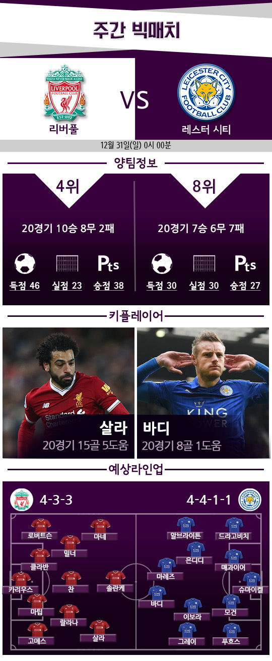 상대는 레스터 시티. 리버풀이 홈에서 레스터에 패한 게 17년 전이라고는 하지만, 그렇다고 안심할 수도 없는 상대다. 뒷공간이 불안한 리버풀이 레스터의 강력한 카운터 어택을 막을 수 있을까?