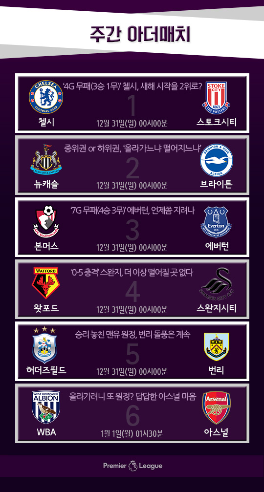 [주간 EPL 매치업] 2017년 마지막 경기, 희망찬 새해 위한 발판?