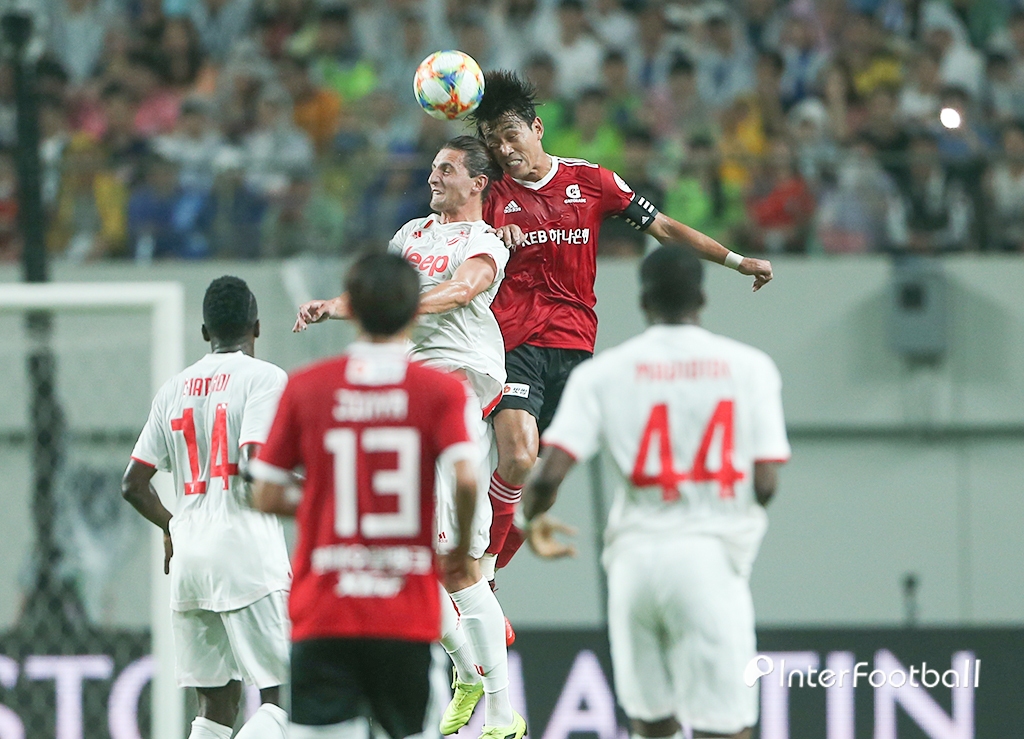 [인터풋볼= 서울월드컵경기장] 윤경식 기자= 유벤투스의 애드리엔 라비오와 팀 K리그의 박주영이 26일 밤 9시 서울월드컵경기장에서 열린 친선전에서 헤딩 경합을 하고 있다.