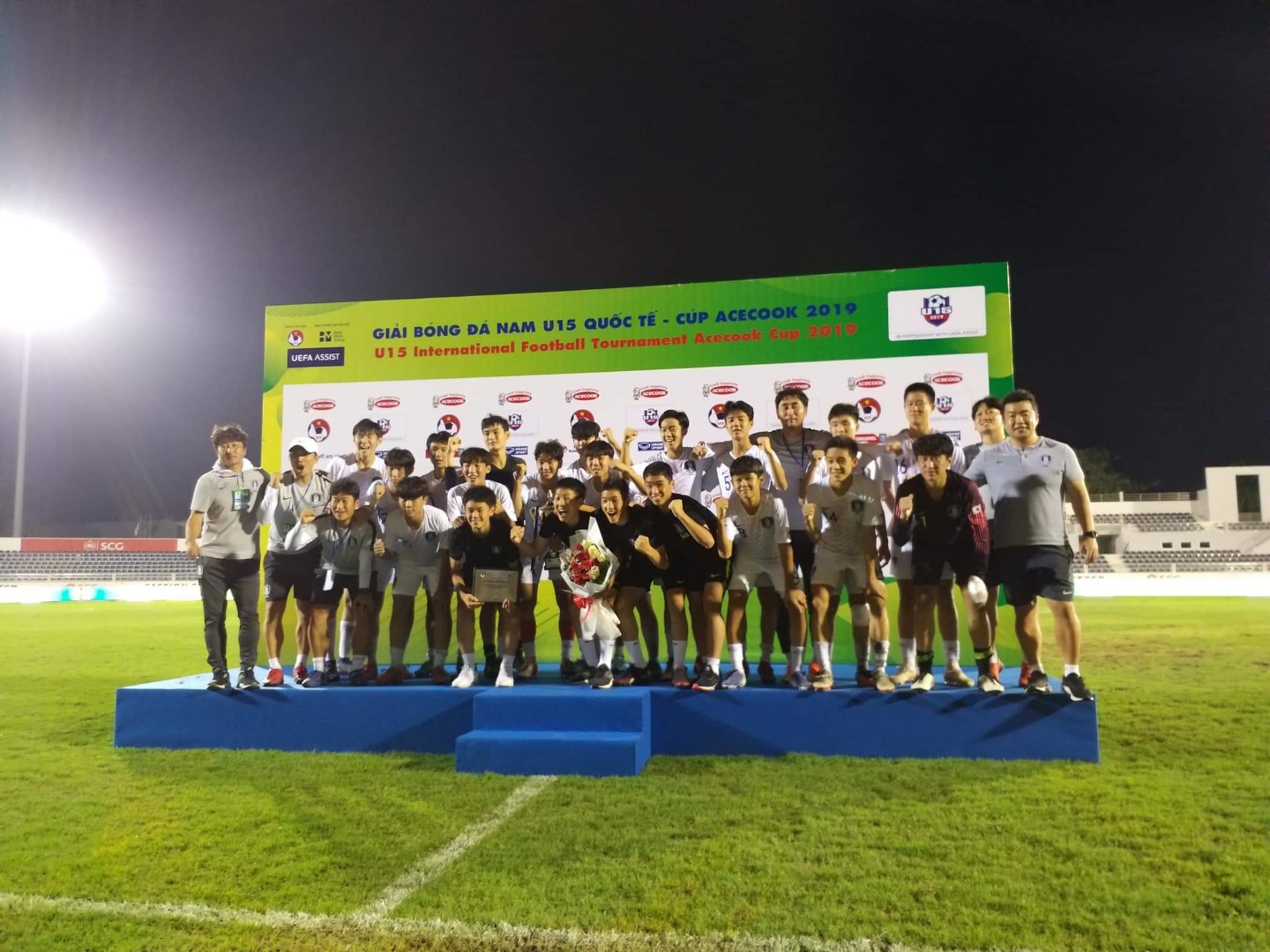 송경섭호는 지난 달 30일(한국시간) 베트남 바리아붕따우에서 열린 2019 에이스쿡컵 U-15 국제축구대회 마지막 경기에서 베트남을 3-2로 이겼다. 앞서 미얀마(6-1 승), 러시아(6-0 승)에 완승을 거둔 대표팀은 이날 베트남을 접전 끝에 물리치고 3전 전승으로 정상에 올랐다. 송경섭호는 지난 달 18일 끝난 미얀마 U-16 국제축구대회에서 2승 1무로 우승을 차지한 데 이어 또다시 좋은 성적을 올리며 겹경사를 맞이했다.