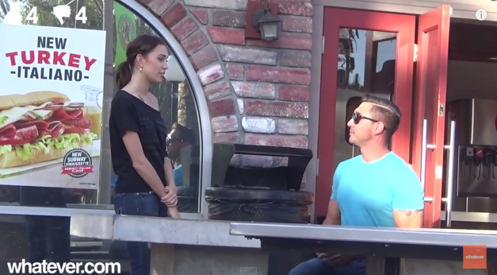 이 영상은 이전에 했던 실험에서 낯선 남자가 여자에게 다가가 섹스하자고 했을때의 반응과 반대 상황을 만든 것이다. 당시 섹스하자는 말을 꺼낸 낯선 남자는 모든 여성에게 "no"라는 대답을 들어야 했다. 하지만 이번에는 어떤 결과가 있었을까?