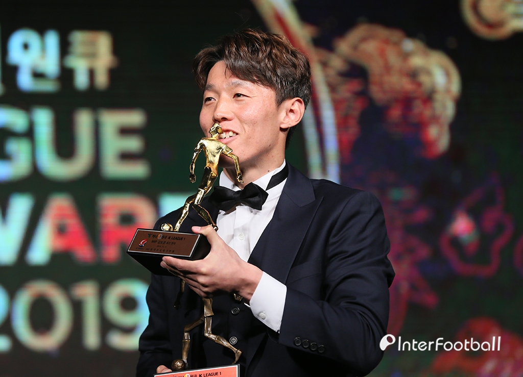 [인터풋볼=홍은동] 윤경식 기자= 울산 현대의 김보경이 오후 서울 서대문구 홍은동에 위치한 그랜드힐튼호텔에서 하나원큐 K리그 어워즈 2019에서 MVP를 수상한 뒤 트로피에 입맞춤을 하고 있다.