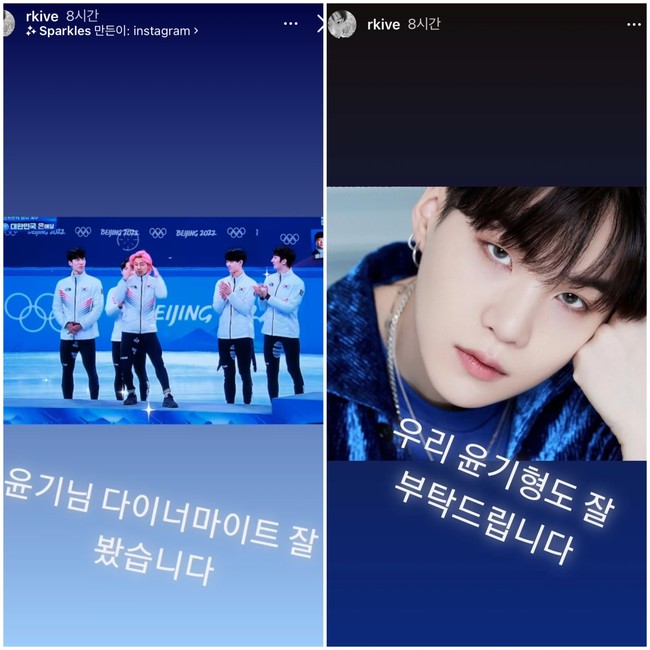 그러자 실시간으로 유튜브 라이브 방송을 진행하던 곽윤기가 이 소식을 접하고는 "진짜로? 미쳤다"라며 곧바로 RM의 인스타그램을 확인하며 감격스러워 하는 모습을 보여 또 화제가 됐다. 그는 "박제를 해야한다. RM님이 내 춤을 봤다니 방송에 모셔야겠다"라며 기뻐했다.