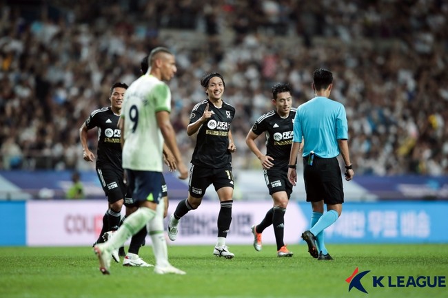 김상식 감독이 지휘하는 팀 K리그와 안토니오 콘테 감독이 이끄는 토트넘은 13일 오후 8시 서울월드컵경기장에서 열린 '쿠팡플레이 시리즈' 1차전을 치르고 있다. 후반 40분 현재 토트넘은 팀 K리그에 6-3으로 앞서 있다.