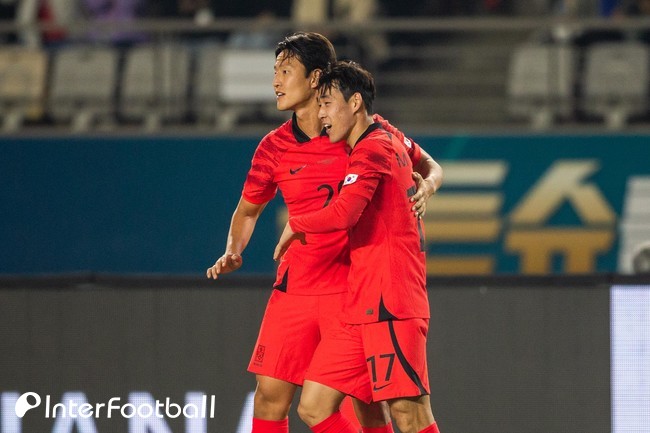 [인터풋볼=김대식 기자(화성)] 송민규의 선제골로 한국이 앞서고 있다.
