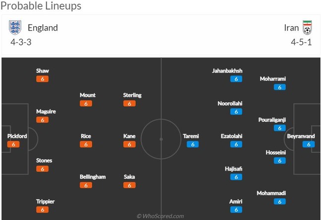 잉글랜드는 21일 오후 10시(한국시간) 카타르 도하에 위치한 칼리파 국제경기장에서 열리는 2022 국제축구연맹(FIFA) 카타르 월드컵 B조 1차전에서 이란과 맞붙는다. 잉글랜드는 FIFA 랭킹 5위, 이란은 FIFA 랭킹 20위다.