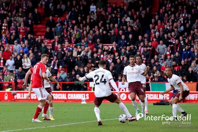 맨체스터 시티는 29일 오전 0시 30분(한국시간) 영국 노팅엄에 위치한 시티 그라운드에서 열린 프리미어리그(PL) 35라운드에서 노팅엄 포레스트에 2-0으로 승리했다.