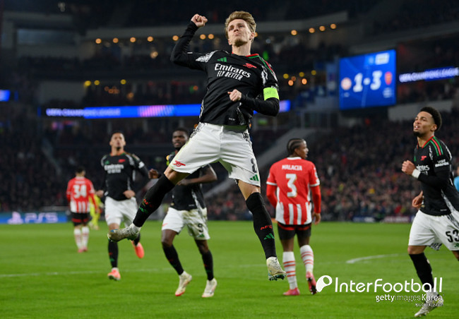 아스널은 5일 오전 5시 네덜란드 에인트호번에 위치한 필립스 스타디움에서 열린 2024-25시즌 유럽축구연맹(UEFA) 챔피언스리그(UCL) 16강 1차전에서 PSV 에인트호번에 7-1 대승을 거뒀다. 아스널은 2차전을 앞두고 유리한 고지를 점했다.