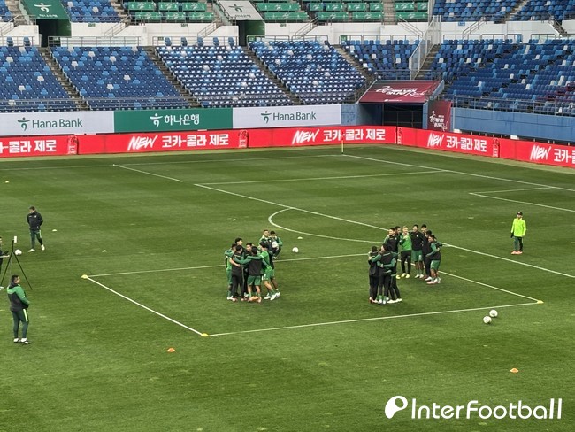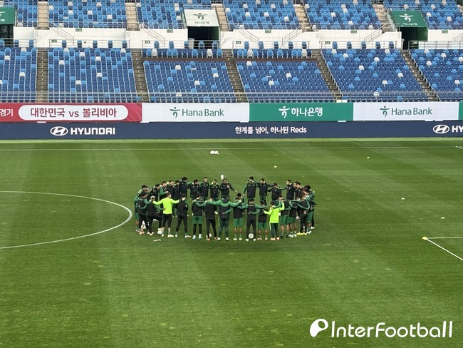 [인터풋볼=박윤서 기자(대전)] 볼리비아는 화기애애한 분위기 속에서 한국전을 준비하고 있다.