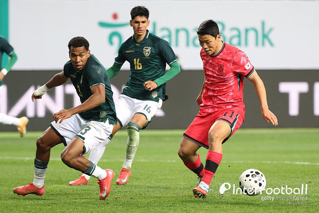 한국이 선제골을 터뜨렸다. 후반 12분 황희찬이 얻어낸 프리킥을 손흥민이 완벽한 감아차기로 골망을 흔들었다. 한국이 변화를 가져갔다. 후반 15분 이재성 대신 배준호가 들어갔다.