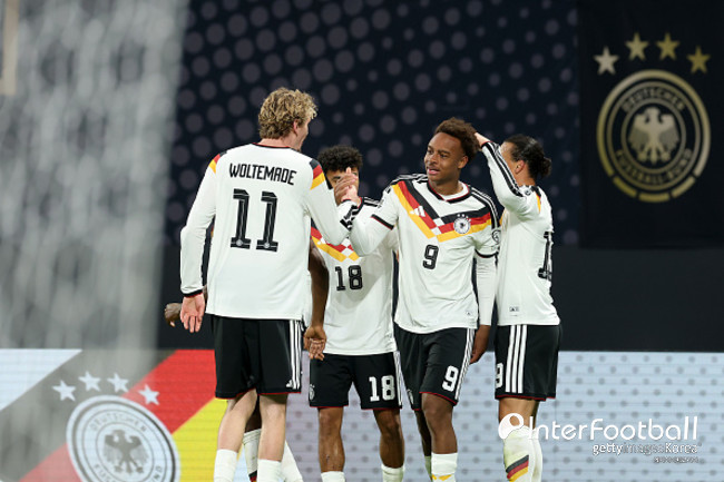 독일의 분위기가 이어졌다. 전반 36분 플로리안 비르츠가 전방으로 날린 롱패스를 르로이 사네가 잡아 골키퍼와 일대일 상황에서 왼발 슈팅으로 한 골을 추가했다. 전반 41분엔 사네가 비르츠의 크로스를 센스 있게 마무리하며 골 맛을 봤다. 전반전은 독일이 4-0으로 앞선 채 끝났다.