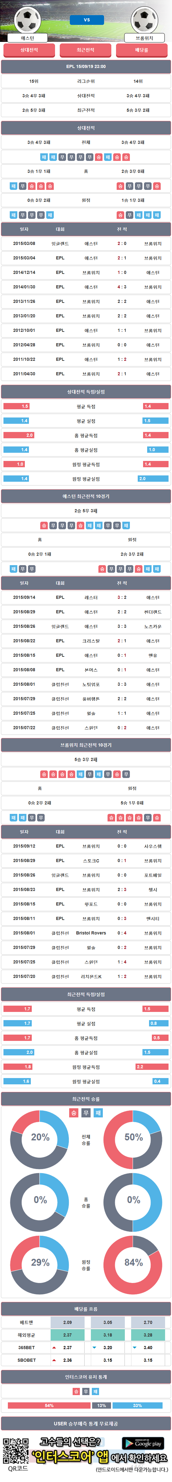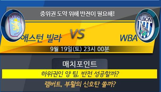 개막전 승리 후 4경기 연속 승이 없었던 애스턴은 이번 경기에서 브롬위치를 승리의 제물로 삼으려 할 것이다. 지난 상대 전적 5경기를 보자면 3승1무1패로 애스턴이 우위에 있다. 애스턴은 5경기에서 10골을 기록했고 브롬위치는 7골을 넣었다.
