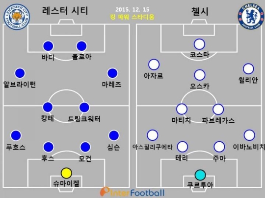 2015-16 잉글리시 프리미어리그(EPL) 16라운드, 돌풍을 이미 넘어선 우승후보 레스터와 지난 시즌 우승팀에서 몇 개월 만에 이제는 강등을 걱정해야 하는 첼시의 맞대결 경기이다.