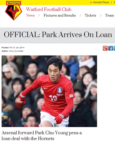왓포드는 1일 오전(한국시간) 구단 공식 홈페이지를 통해 “한국 국가대표 박주영을 올 시즌이 끝날 때까지 임대영입 한다“고 공식 발표했다.